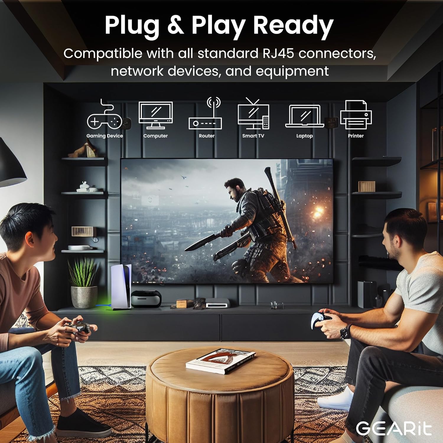 - High-Performance Cat 6 Ethernet Cable Pack GEARit's 24-pack of 10 ft Cat6 ethernet patch cables features 24 AWG UTP stranded conductors twisted in an X-structure spline to minimize crosstalk and deliver full 10 Gbps bandwidth - future-proof network cables for home, office, data-center, and server use.