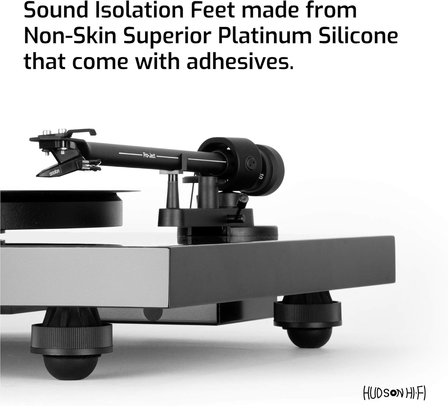 - Optimize Your Stereo Equipment's Sound Quality: Reduce vibration and resonance by up to 95.32% with the help of these turntable isolation platform rubber feet. Play your favorite tracks and LPs without the muddy-sounding bass–rather a cleaner, more defined, and highly nuanced audio quality.