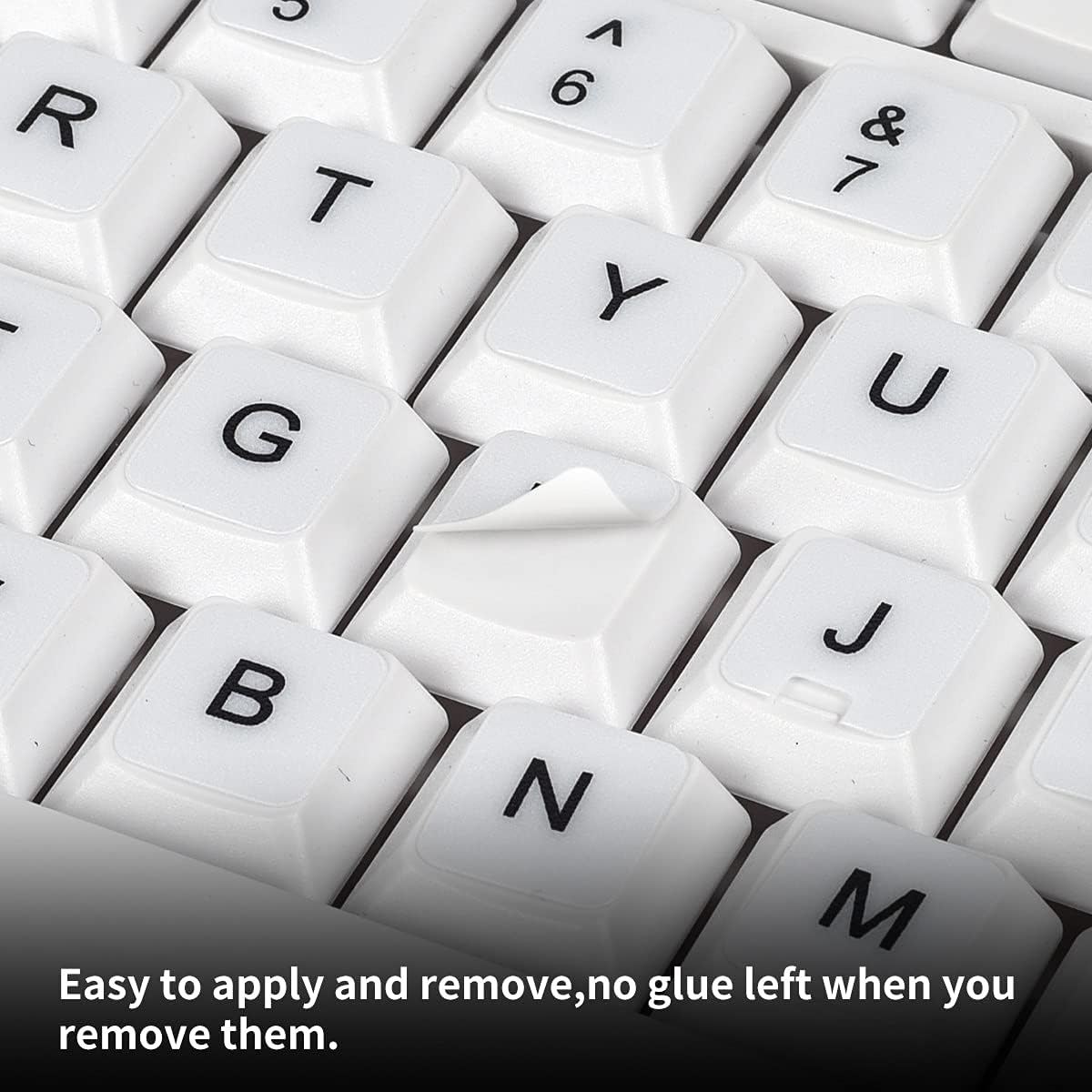 - 【EASY TO APPLY & REMOVE】The english keyboard stickers are easy to apply and remove without leaving any residue behind. The individual keyboard replacement english stickers have been cut neatly, and there is a notch for the F and J keys to blend well with your keyboard.