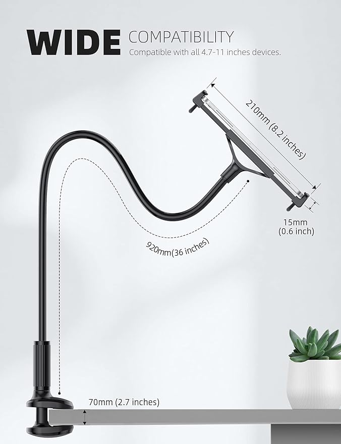- 【Wide compatibility】 This ergonomic tablet holder can fits 4.7 - 11 inch phones and tablets, like 2024 / 2022 / 2021 iPad Pro 11, iPad 10.9, ipad 10th generation, iPad Air 5 4 3, iPad mini 6 5 4 3 2, iPad Pro 9.7, 10.5, 2020 iPad Pro 11, iPhone 15 Pro Max, iPhone 14 Pro Max, iPhone 13 Pro Max, iPhone 12 Pro Max, iPhone 11 Pro Max, Galaxy Tab A8 A7, Galaxy Tab S8 S7, Galaxy Tab E, Switch, Kindle.