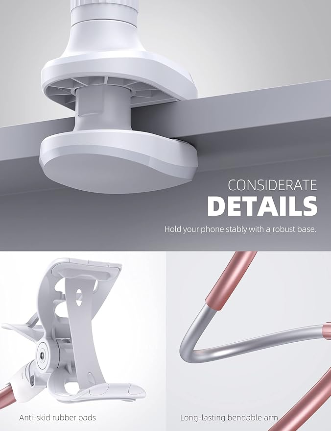 - 【Stable and Durable】As for the 33.4 inches (85cm) long arm, high- quality Aluminum-magnesium alloy solid core makes the lazy arm sturdy enough to hold his phone firmly, yet flexible to bend in any direction to accommodate your view. It will be a lifesaver for protecting you from neck pain.