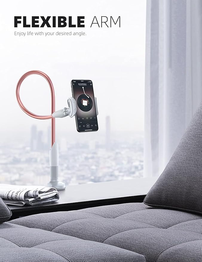 Lamicall Phone Holder Bed Gooseneck Mount - Cell Phone Clamp Clip for Desk, Flexible Lazy Long Arm Headboard Bedside, Overhead Mount Stand, for 4-7" Phone, iPhone 15 Pro Max, 14 Plus, 13, Rose Gold