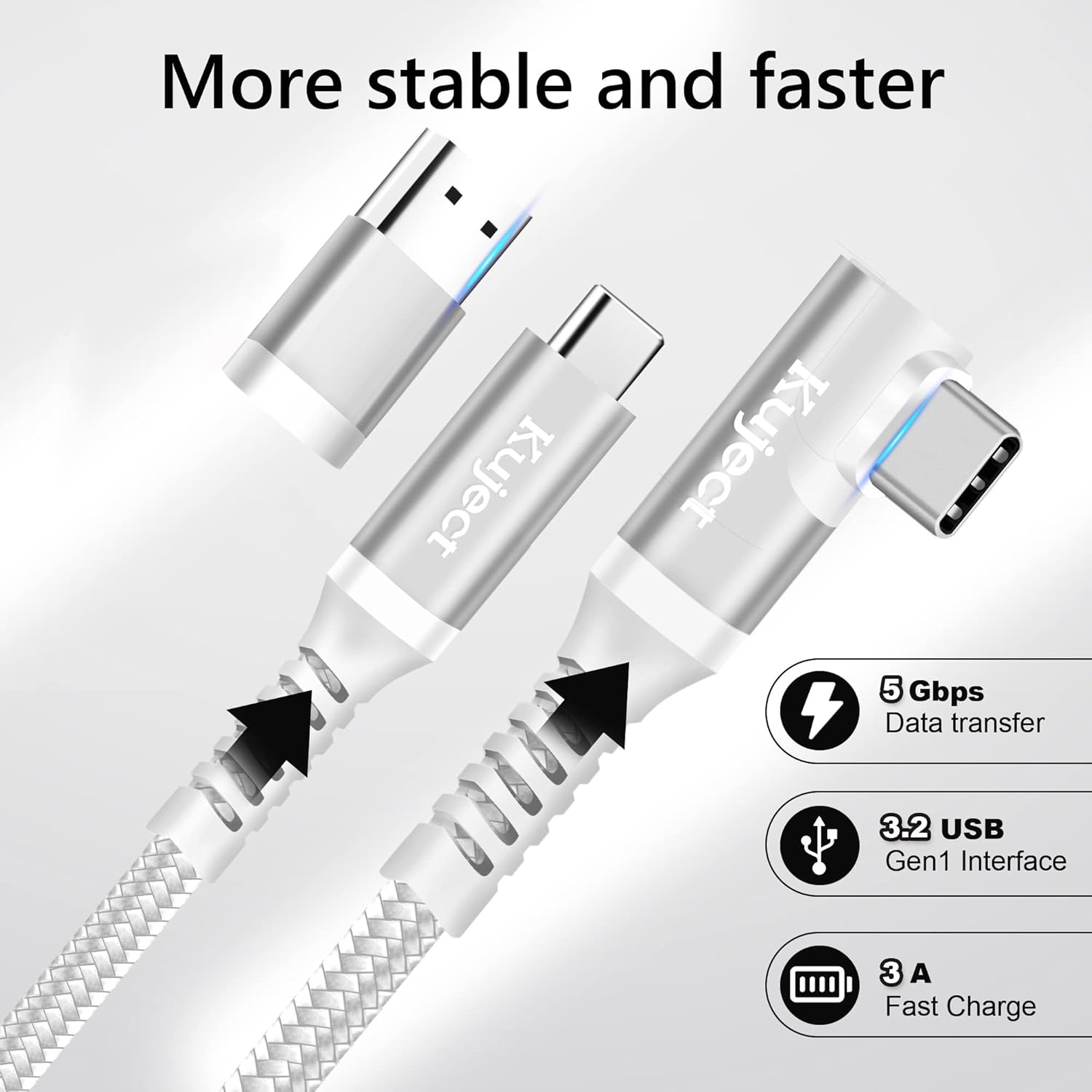 - USB 3.2 interface: Compatible with usb 3.0/ 3.1 gen1/ 3.2 gen1, and designed with 90° which can better work for quest headset. The additional USB-A transfer port makes it compatible with more devices