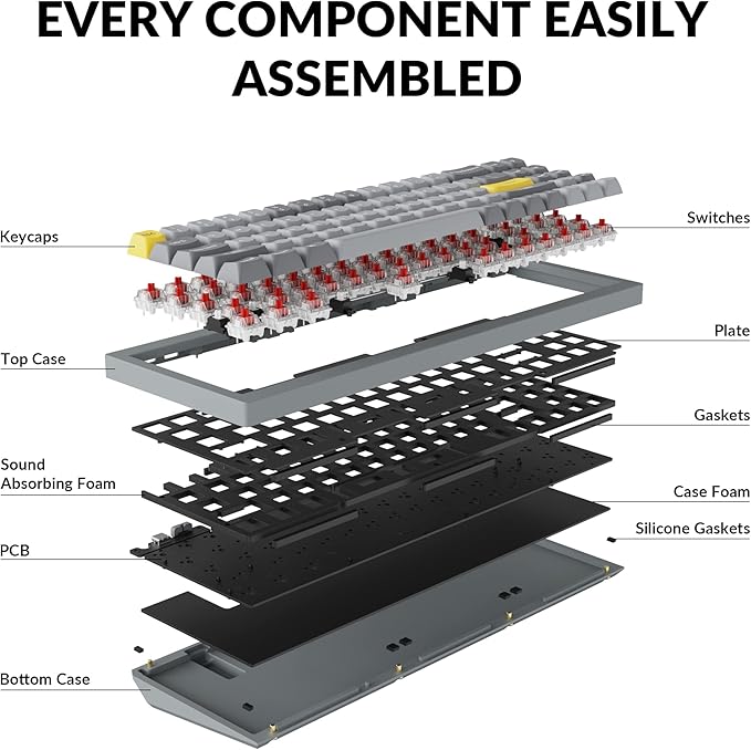 - Fully Customizable From the Inside Out: To build a fully customizable keyboard, we designed every component easily assembled, including keycaps, switches, gasket, plate, and case foam if you want. With QMK and VIA support, you can easily program and remap each key on the keyboard. The open-source firmware means endless possibilities for keyboard layouts, shortcuts, backlight effects, and more.