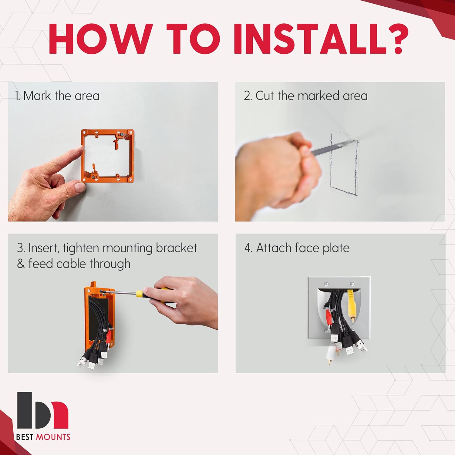 - šš šššš ššššš šššššššššš ššš ā Bestmounts Single gang wall cable pass through is the perfect solution to conceal cords on wall up to 4 low voltage audio/video cables behind your wall-mounted flat panel TV (may hold more than 4 cables depending on type)