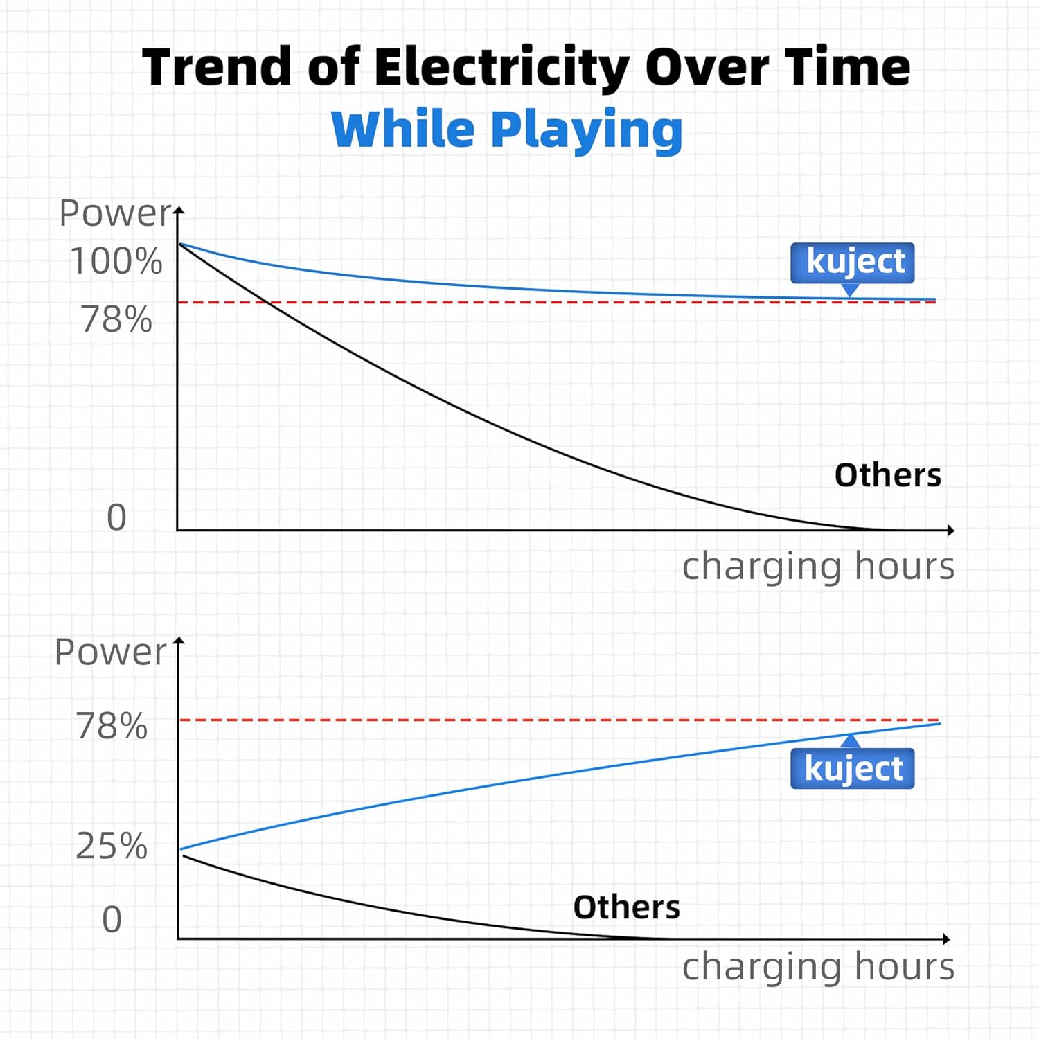 - Safe Charging: Exclusive smart chips are adopted to intelligently control the current input within a reasonable range to ensure the safe use of electricity and battery life. The smart chip balances the current and makes the battery always at 75% when you play PCVR games