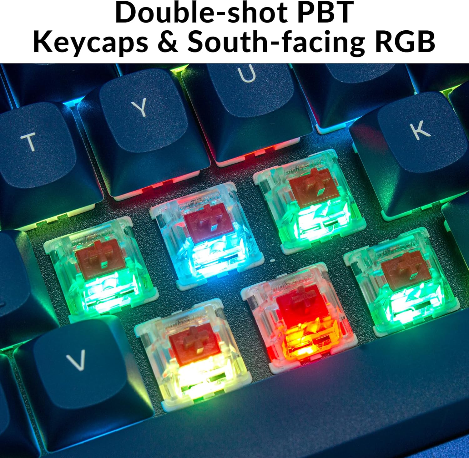 - Double-shot PBT Keycaps & South-facing Backlight: The Q5 comes with our unique OSA profile and double-shot PBT keycaps that aim to provide a more comfortable and subtle fingertip feel with excellent oil resistance for long-term use. The south-facing RGB is designed to better illuminate the keyboard backlight from the typist’s angle and free from interference when the user installs Cherry- profile alternative keycaps on the Q5.