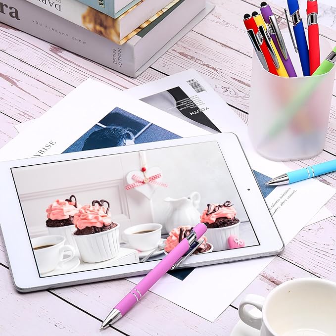 - Works with Kinds of Touchscreen Devices: you can use these black ink pens with stylus tip on any touchscreen device, compatible with Phone, Pad, LG, tablet and smartphones; This 2 and 1 touch pen can be applied as appreciation gift for teachers, friends