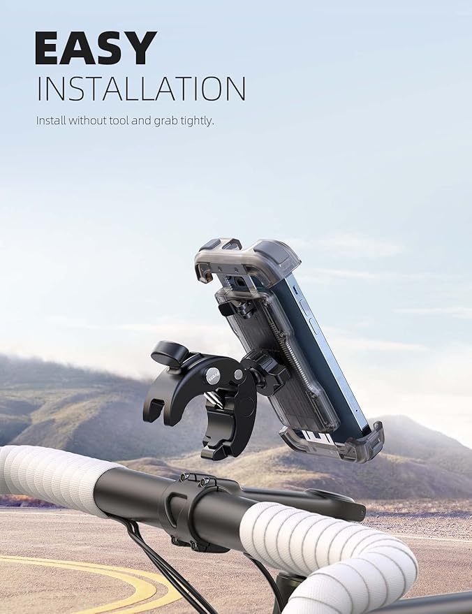 - 【 Upgraded Handlebar Clip】The handlebar clip adopts a new design, just press the button on the handlebar clip, you can quickly adjust the clip to fit the handlebar, no tools are needed. The secure grip makes sure your device is stable during the ride, wouldn’t slide even with severe bumps.