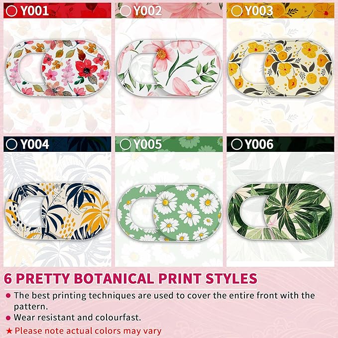 Laptop Camera Cover Slide Cute (6 Pack), Ultra Thin Webcam Cover for iPhone iPad MacBook Pro Computer iMac Cell Phone PC Accessories, 0.03" Camera Blocker Slider, Great for Privacy - Flowers