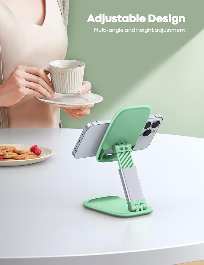 - Weighted Metal Base - As to ensure the stability, the telescopic rod and the base of this green mobile phone stand are made of weighted excellent metal. The exquisite groove design of the base match with the strong adjustable rod allows your cell phone to rest steadily on it, even with a thick case. It’s the best Thanksgiving Day, Christmas gift.