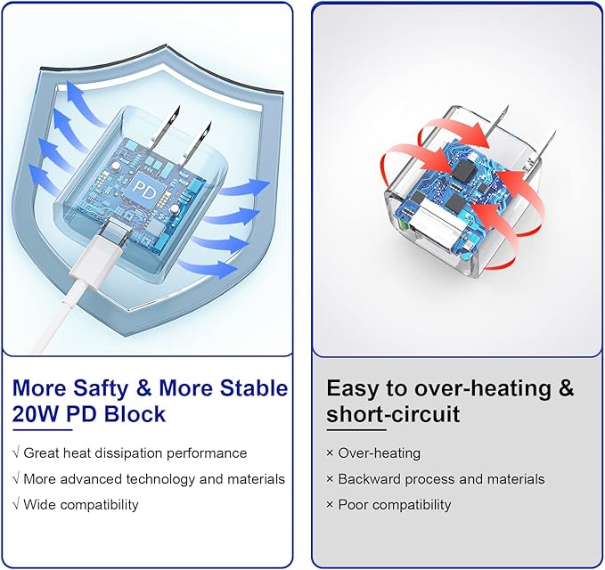 - [ UL Authentication] - Our 3 pack iPhone charger fast charging product has got UL certificate.The lightning cable built-in smart identification chip which automatically protect your device from damage.Our fast charger iPhone charging block is 50% faster than 5W charger which saving more time of your life.The Official guarantees for durability and reduce the problems of overheating,poor contact when your iPhone/iPad/iPod/AirPods are charged