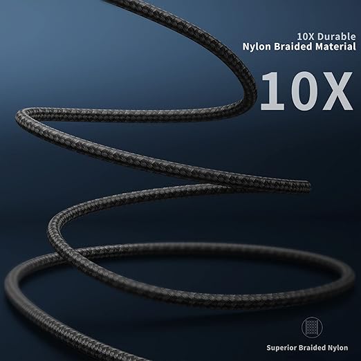 - Durable and Flexible: iPhone charging cable designed with premium materials, comes with nylon braided surface, tangle-free. It has been tested with 10,000+ times bend and strong bearing capacity. 90 degree aluminium alloy connectors resist heat and corrosion, reduced the fraying and wearing of the cable joints, prolonging its life span.