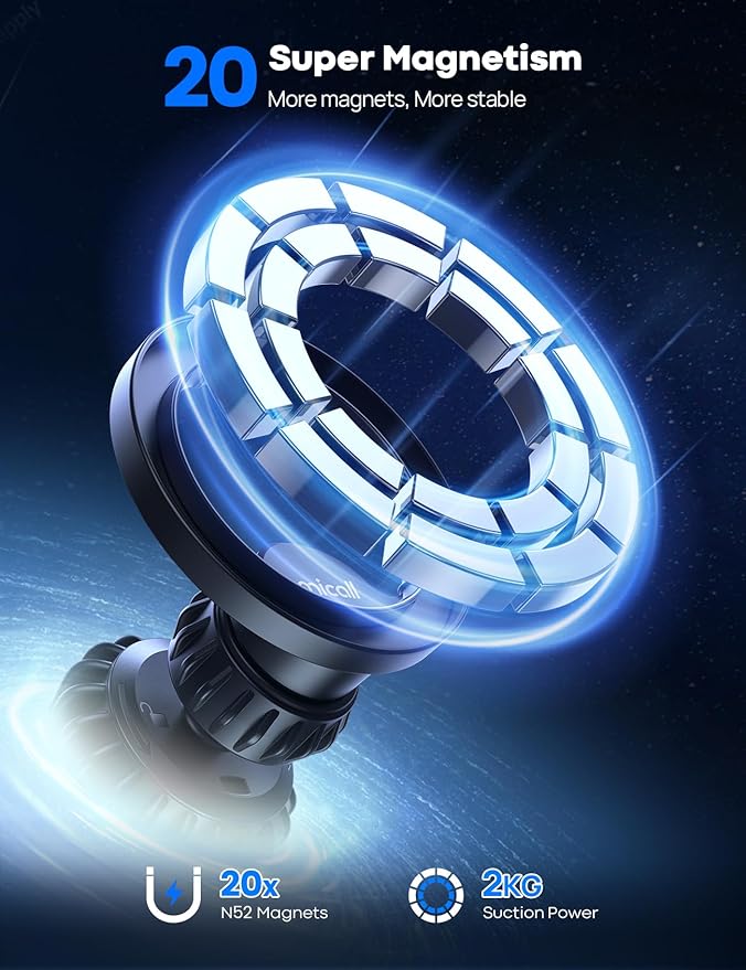 - 20 Upgraded Magnets: 2025 Upgraded Magnet Layout - 38.7% Power Boost! Lamicall car mount for Magsafe built-in 20 upgraded N52 super magnets, which can easily hold items up to 4.4 lbs. Super powerful magnets ensure a firm hold on your cell phones. Never afraid of falling off even braking strongly, taking sharp turns or driving on rough roads. A practical for MagSafe accessory, car accessory.