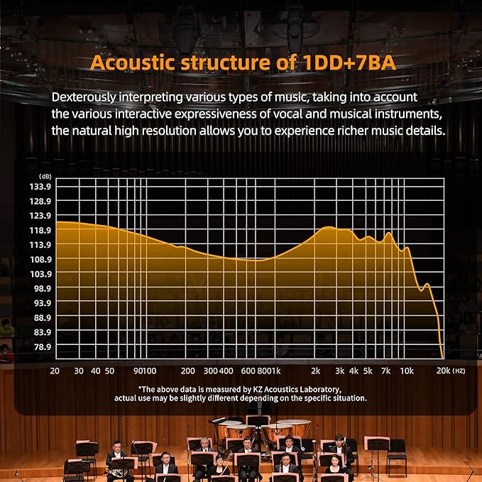 KZ ZAR in-Ear Monitor 7BA+1DD Hybrid 8 Drivers Gaming Earbuds HiFi Bass Noise Isolation IEM, Clarity in All Frequency Stereo Comfort-fit in Ear Headphones for Audio Engineers, Musicians(No Mic)