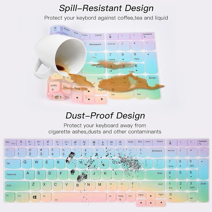 - 【ANTI-SPILL & DUST-PROOF】-Waterproof and dustproof, environmentally protective and ideal for resistance against your keyboard against everyday spills (coffee/beer/milk), dust (crumbs/powder), liquid, pet's pees or the other incident.