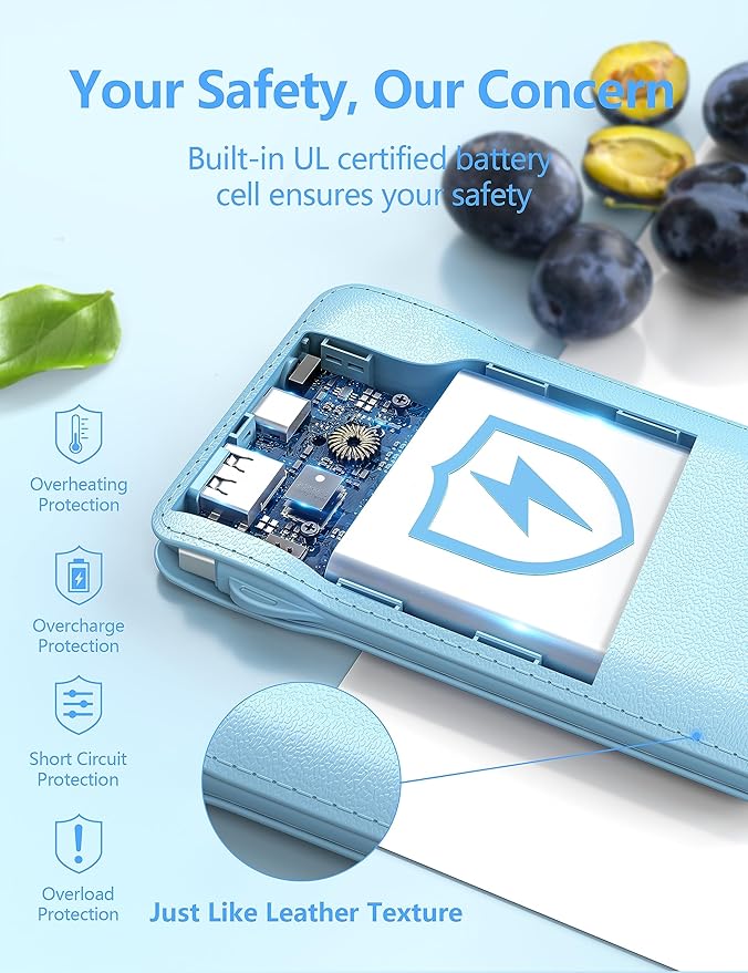 - So convinient! Using the built-in cables to charge, the portable battery charger is compatible with IOS smartphones and all USB-C devices and smart devices. For example, one built-in IOS cables compatible with iPhone 14/13/12/11/X/XS/8/7/6/5/5S series, iPad series, the other one built-in USB-C cable compatible with iPhone 15, iPhone 15 Plus, iPhone 15 Pro, iPhone 15 Pro Max, Samsung S23,S22,S21,S20 series and other cell phones