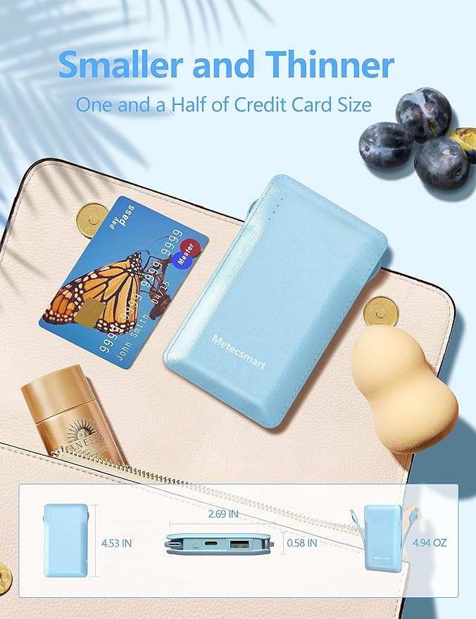 - Versatile Recharging: Tiny body but multiple functional! This battery bank supports three kinds of fast output and one USB-C input as follow shows: USB-A output port; USB-C output/input port; two cables compatible with smartphones and Type-C phones; The various charging options at your fingertips! This charger supports pass-through charging, allowing you to use your device while it's plugged in and recharging.It can charge multiple devices simultaneously