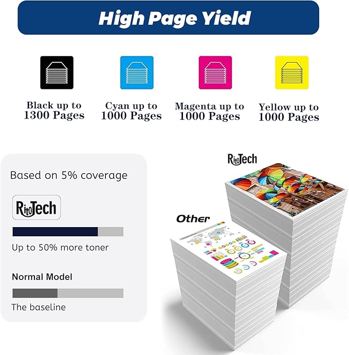 - 【High Page Yield】- Up to 1,300 pages per 130A black toner cartridge & 1,000 pages per 130A color toner cartridge (Letter/A4, at 5% Coverage)