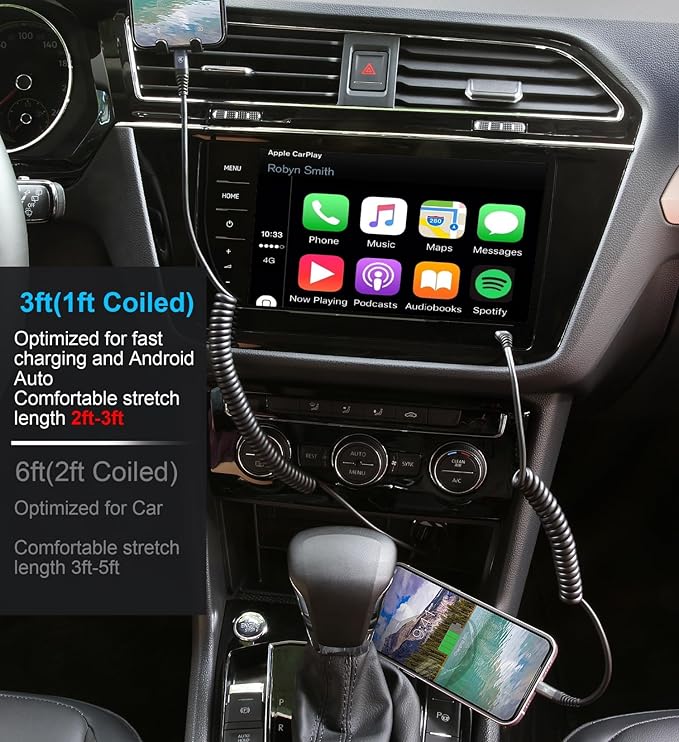 - USB C to Lightning iPhone Charger Cable for Car : Retractable iPhone car charger with spring shape design, portable and not tangled. It can well save the use of space in the car and say goodbye to the hassle of data cable clutter and tangles.