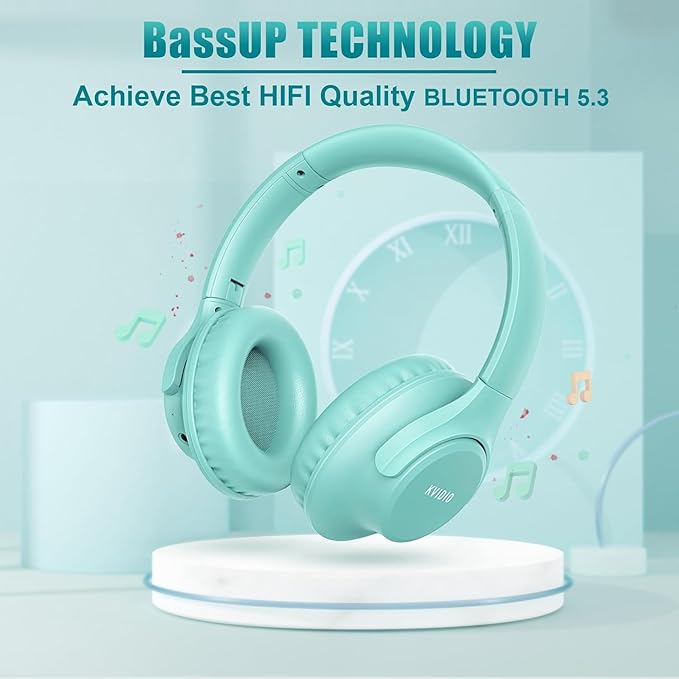 - Seamless wireless connection: Updated Bluetooth version V5.3 ensures an ultra fast and virtually unbreakable connection up to 33 feet (10 meters). Rechargeable 500mAh battery can be quick charged within 2.5 hours. After 55 hours of playtime, you can switch KVIDIO Cordless Headset from wireless to wired mode and enjoy your music NON-STOP. No worry for power shortage problem during long trip