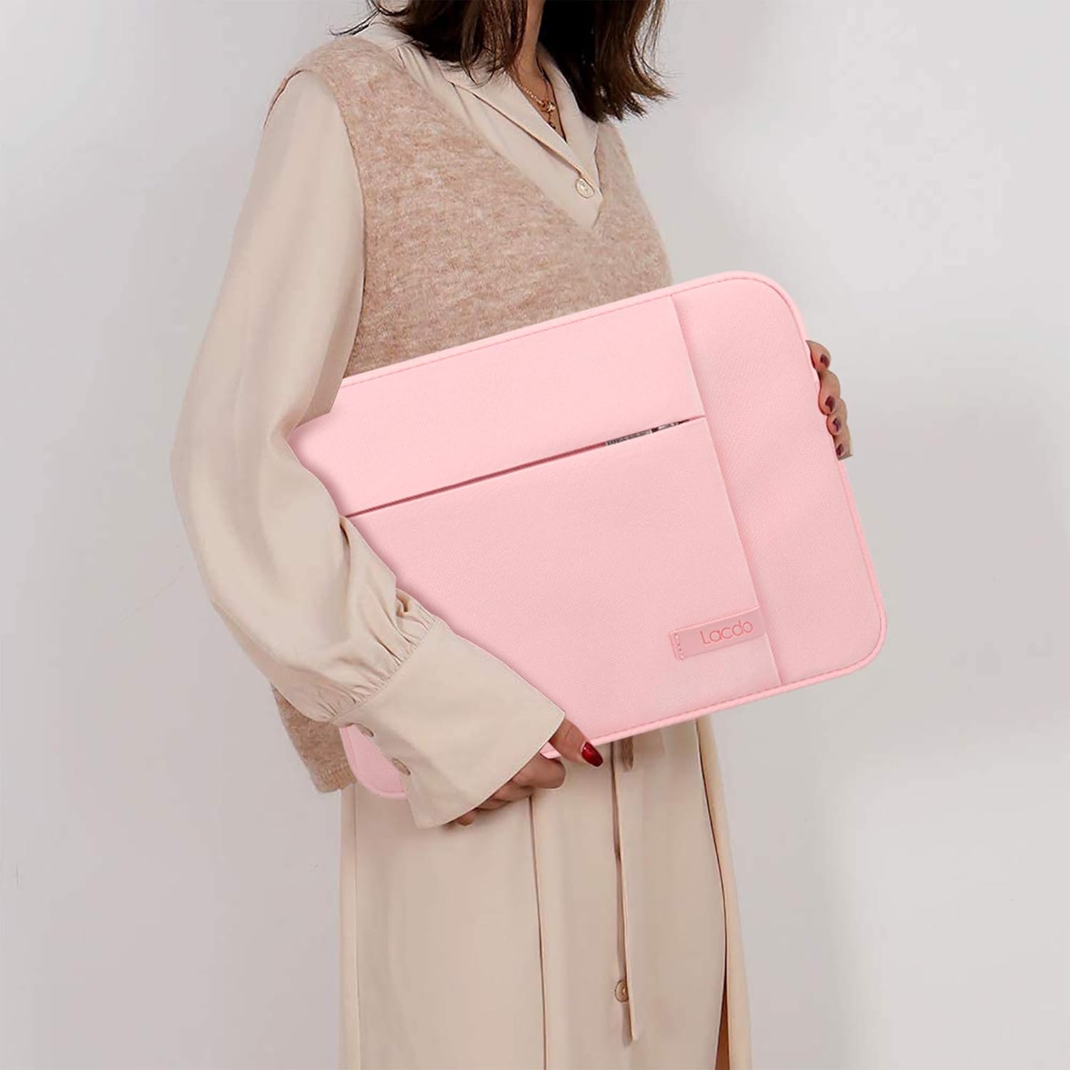 Lacdo Laptop Sleeve Case for 15 inch New MacBook Air M4 A3241 2025, M3 A3114, M2 A2941 2024-2023, 15 inch MacBook Pro A1990 A1707, Dell XPS 15 Plus Computer Case Bag with Accessory Pocket, Pink