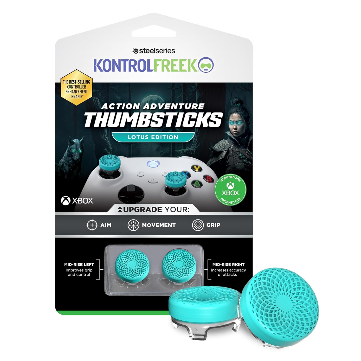 KontrolFreek Lotus for Xbox One and Xbox Series X Controller | Performance Thumbsticks | 2 Mid-Rise Concave | Teal/Clear