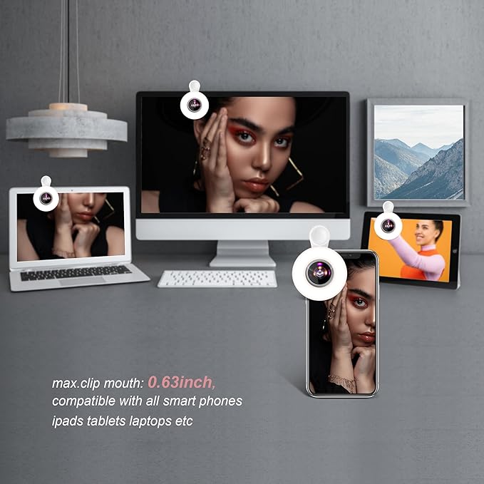 - 【Universal Clip-On Design for All Devices】 The durable, scratch-resistant clip securely fits smartphones, tablets, and laptops without leaving marks. Compact and lightweight, it’s the perfect on-the-go accessory. Slip it into your bag, pocket, or purse for photography anytime, anywhere.