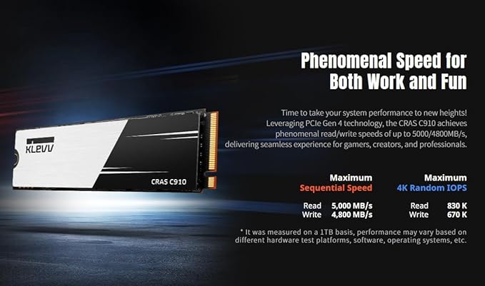 - 【Phenomenal Speed for Both Work and Fun】 Time to take your system performance to new heights! Leveraging PCIe Gen 4 technology, the CRAS C910 achieves phenomenal read/write speeds of up to 5000/4800MB/s, delivering seamless experience for gamers, creators, and professionals.