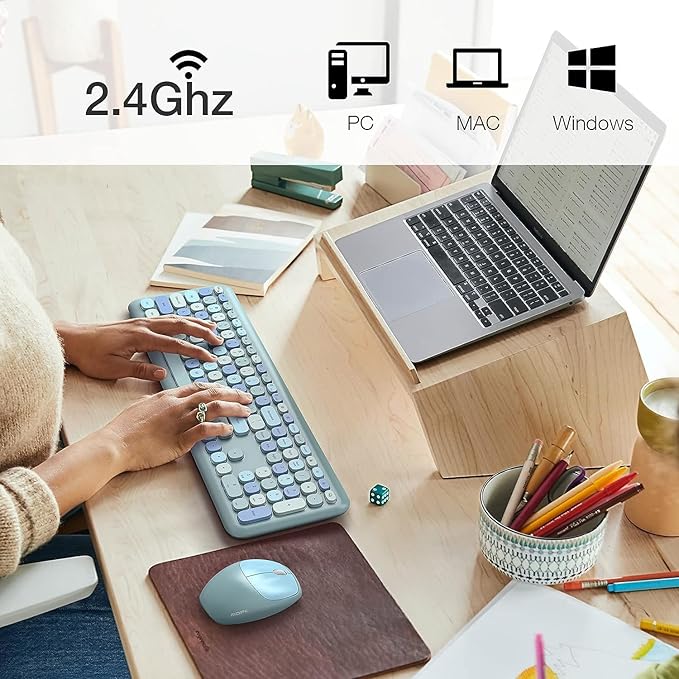 - 【Wireless Keyboard and Mouse Combo】The most popular mixed colors in 2022, attract more people's eyes, give you a different vision, enjoy a different keyboard experience, create a colorful desktop, for you to delight your mood!