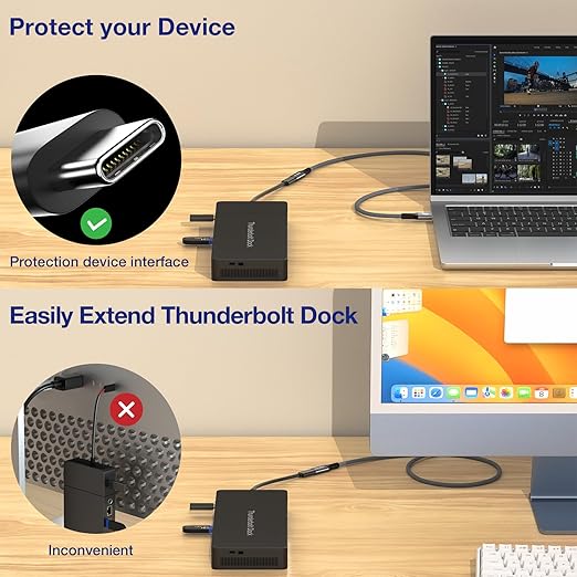 - UHD 8K Video: This Thunderbolt 4 extension cable supports video signal transmission to devices with USB C display function, up to 8K60Hz, 6K60Hz, 5K120Hz, 4K144Hz, etc., and can also drive two 4K@60Hz displays through MST mode. Ultra-high resolution and refresh rate, let you experience every detail.