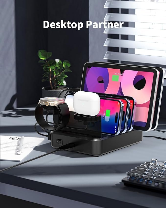 - Universal Compatibility: This multiple charging station is designed for your iPhone 16/15/14/13/12/11/11Plus/Pro/Pro Max/XS/XS Max/XR/X/8/8 Plus/7/7 Plus, iPads, iPad pro, tablets, Galaxy S24/ 23/ 22/ 21 Series, Note8, Note7, LG, google, Kindle, PS5, Xbox, headphones, keyboards, power bank and more. Anyone looking to simplify their charging device deserves it