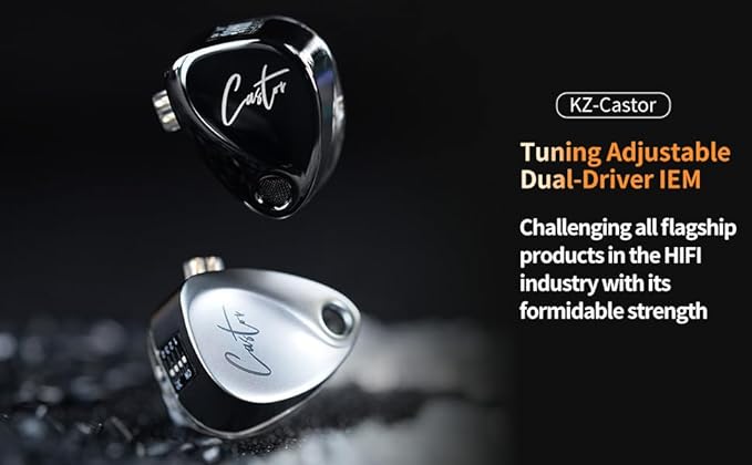 - 【Innovative Dual Dynamic Drivers Structure】KZ Castor studio headphones adopts an innovative dual-dynamic driver acoustic design in pursuit of the harmen FR curve sound. Top and bottom stacked cavity structure endows more space to vibrate sound, mantain phenomenal acoustics. Silver version keeps the basic while black version adds an additive improved bass.