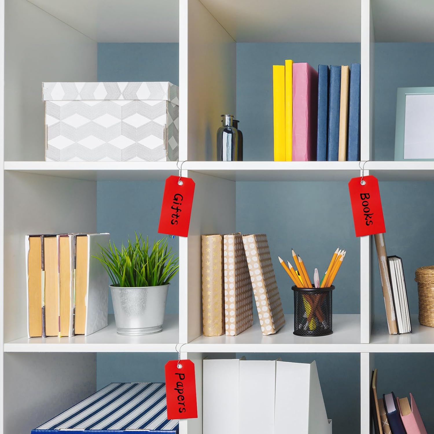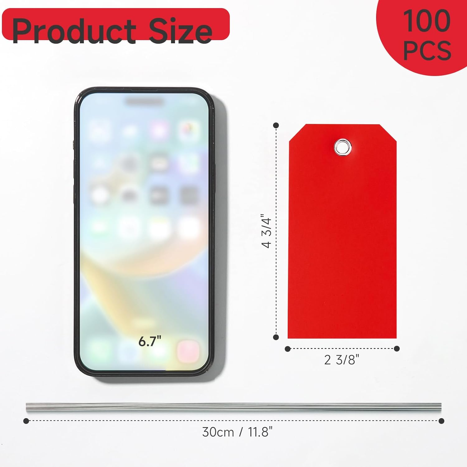 100 Pcs Red Tags with String Blank Shipping Tags with Metal Wire Writable Price Repair Plastic Service for Equipment Product Jewelry Clothing Inventory Car Parts (Red, 4 3/4" x 2 3/8")