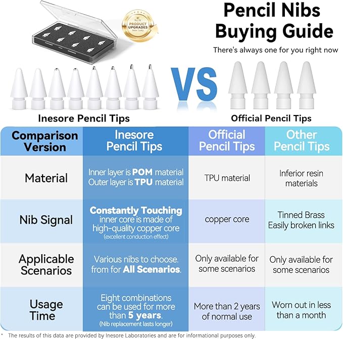 - 【COMPATIBILITY】:Inesore Upgraded Apple Pencil Tips for iPad Pro /Apple Pencil Pro/Apple Pencil 1st Generation/Apple Pencil 2nd Generation/Apple Pencil USB-C.