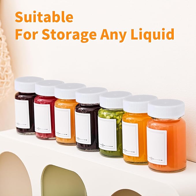 - Package List: 16*little glass jars, 16*white leakproof lids, 32*blank labels. set to meet any of your usage needs, choose a reusable juice bottle, and say goodbye to plastic once and for all.