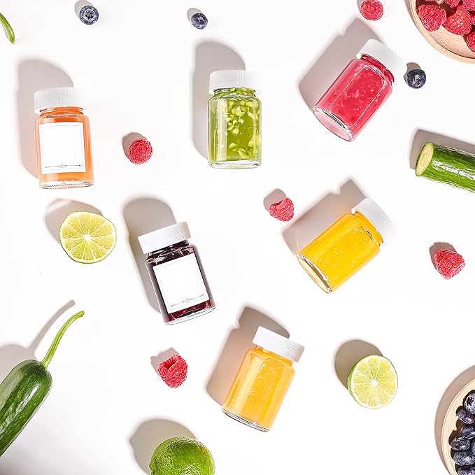 - Lightweight: Our 2 oz/60 ml small glass bottles are perfect for storing juicing, ginger, wellness or other shots, potion, oil, beverage and samples, syrup, salad dressings, seasonings, and other kinds of foods!