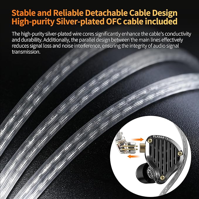 - 【Detachable Silver-Plated OFC Cable】The high-purity silver-plated wire cores significantly enhance the cable's conductivity and durability. Additionally, the parallel design between the main lines effectively reduces signal loss and noise interference, ensuring the integrity of audio signal transmission.