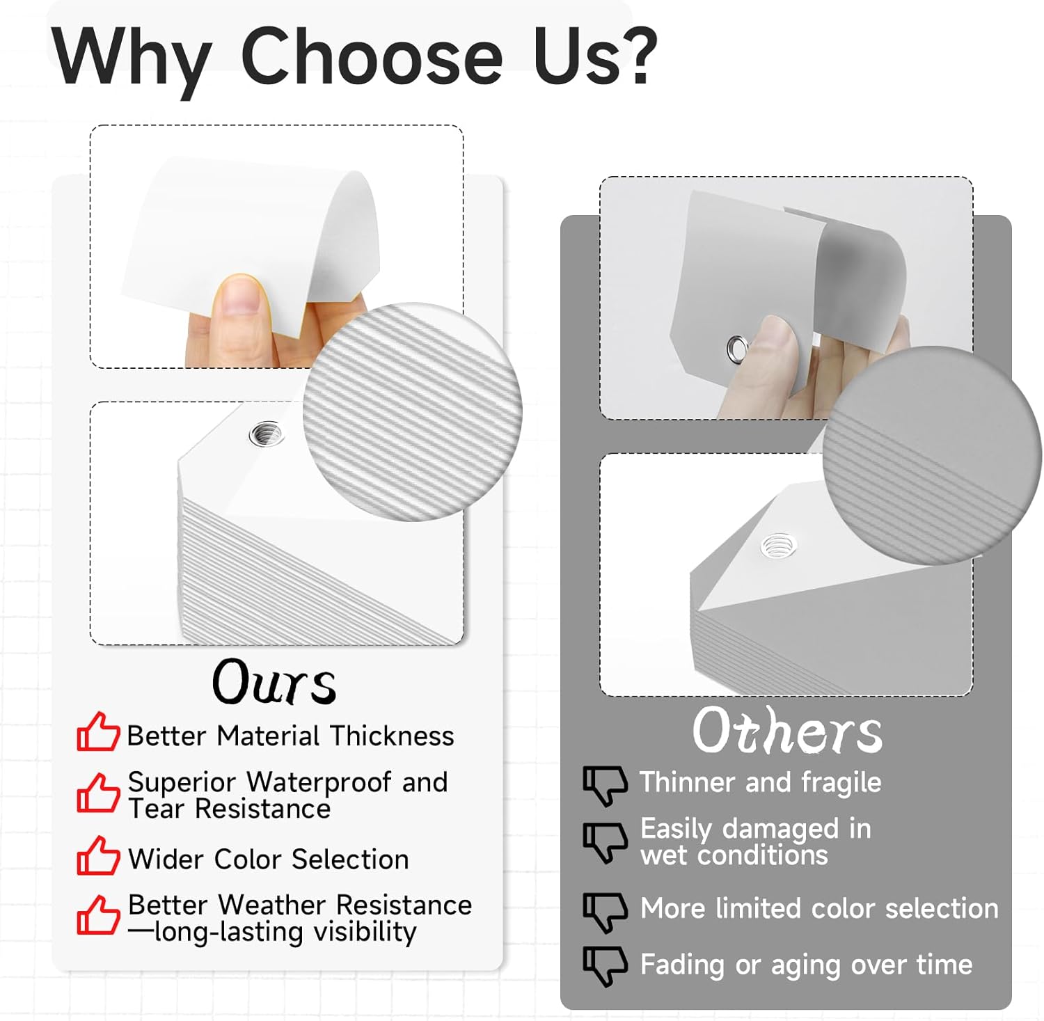- Widely Applied: Hang tags with reinforcement patches are suitable for numerous purposes, such as color coding projects, inventory control, price tags, key label, labeling storage parts labels. Their versatility makes them an essential tool for businesses, schools, home, office and households