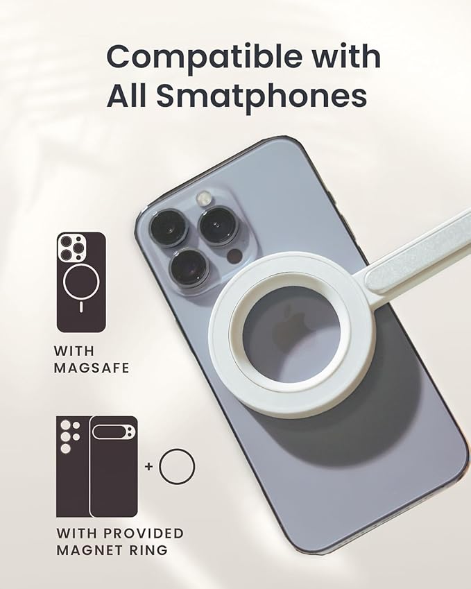 - Wide Compatibility: Designed for iPhone 12/13/14/15/16 Pro Max Mini and official MagSafe cases, this iPhone tripod mount attaches directly without the need for metal plates; For Android phones and non-MagSafe cases, the included metal rings provide secure attachment, ensuring universal compatibility