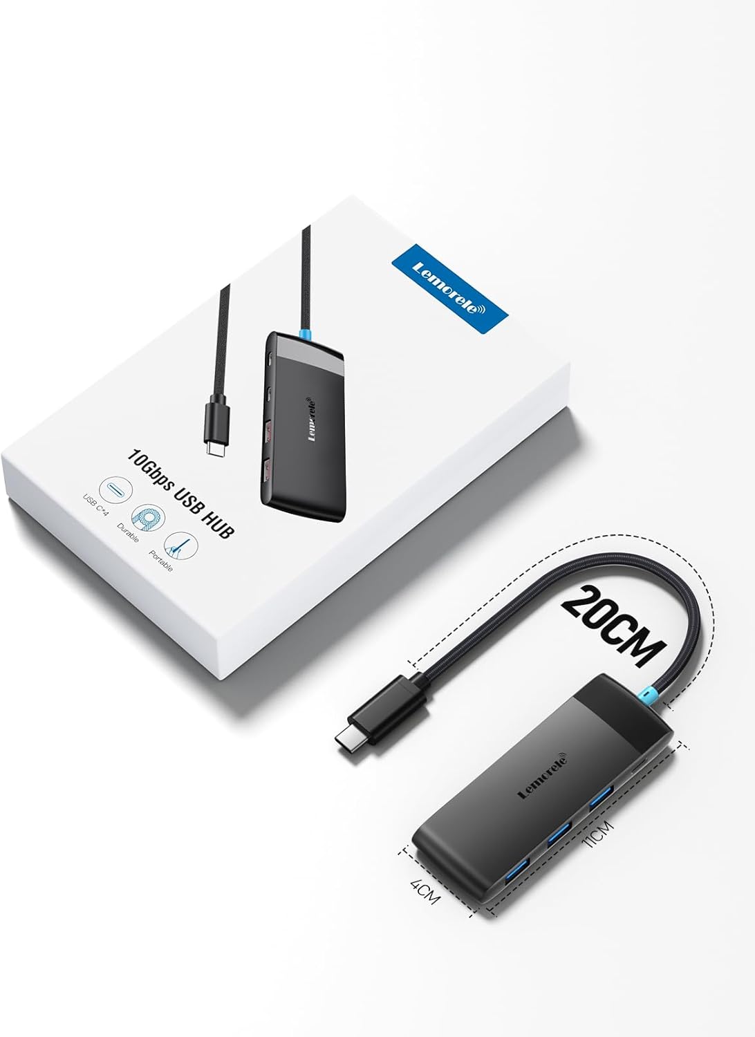 10Gbps USB C Hub, 4 Ports USB 3.2 Splitter for Laptop, USB C to USB Multiport Adapter w/Charging Port, for MacBook Pro/Air, iMac, Surface Pro, Dell, HP, iPad, Samsung, Etc., 0.65ft Cable