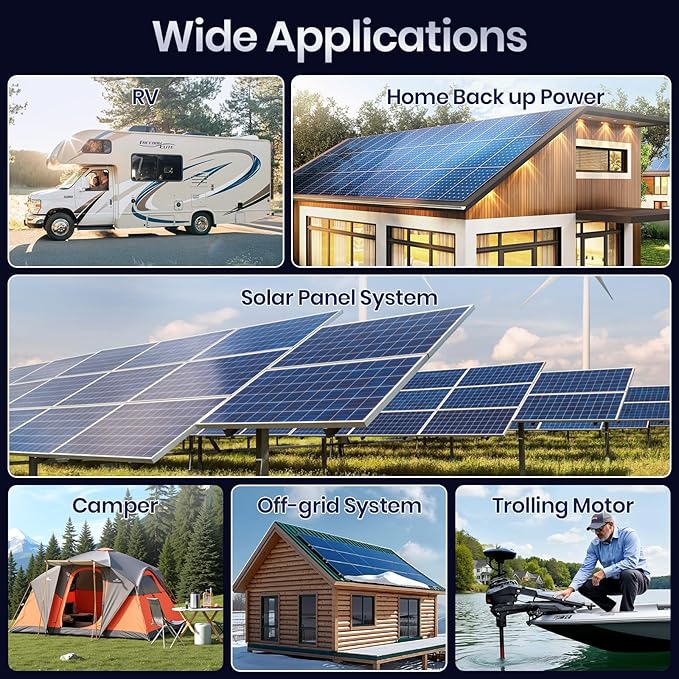 - 【Max.20.48kWh Energy in Connection】With a capacity 100Ah and a Max. load power of 1280W, Timeusb 12V 100Ah group24 LiFePO4 battery can meet the needs of the most electrical appliances. Operation-easy, time-saving, cost-effective, Timeusb 12V 100Ah group24 LiFePO4 battery can support Max. 20.48kWh energy storage by 16 batteries in 4P4S connection. It can not only be used for a variety of RVs, boats and trolling motors but also for off-grid and residential energy storage!