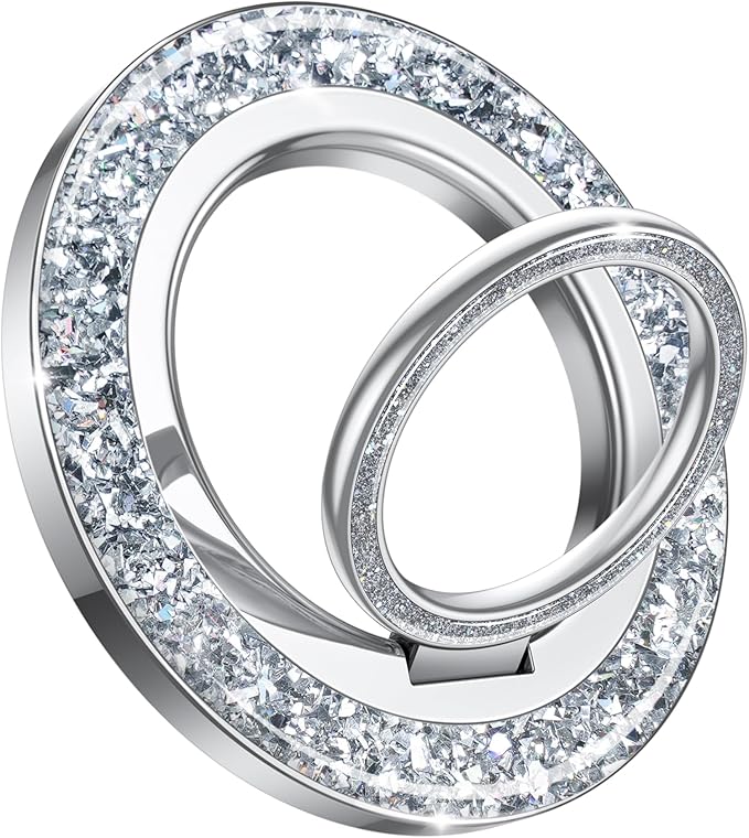 - 2025 Fashion Twinkle Ring : Lamicall 2025 newest magnetic phone ring grip makes a perfect combination of fashion and functionality. Unlike common single-color rings, our newest magnetic phone ring grip is not only a practical cell phone grip stand but also an eye-catching phone ornament. The outer ring of this mag safe grip is adorned with high-quality silver glittering materials, giving it a diamond-like shine that adds a touch of glamour to your mobile phone. A good gift for your wife, daughter, mother, aunt, families, girlfriend, friends, yourself