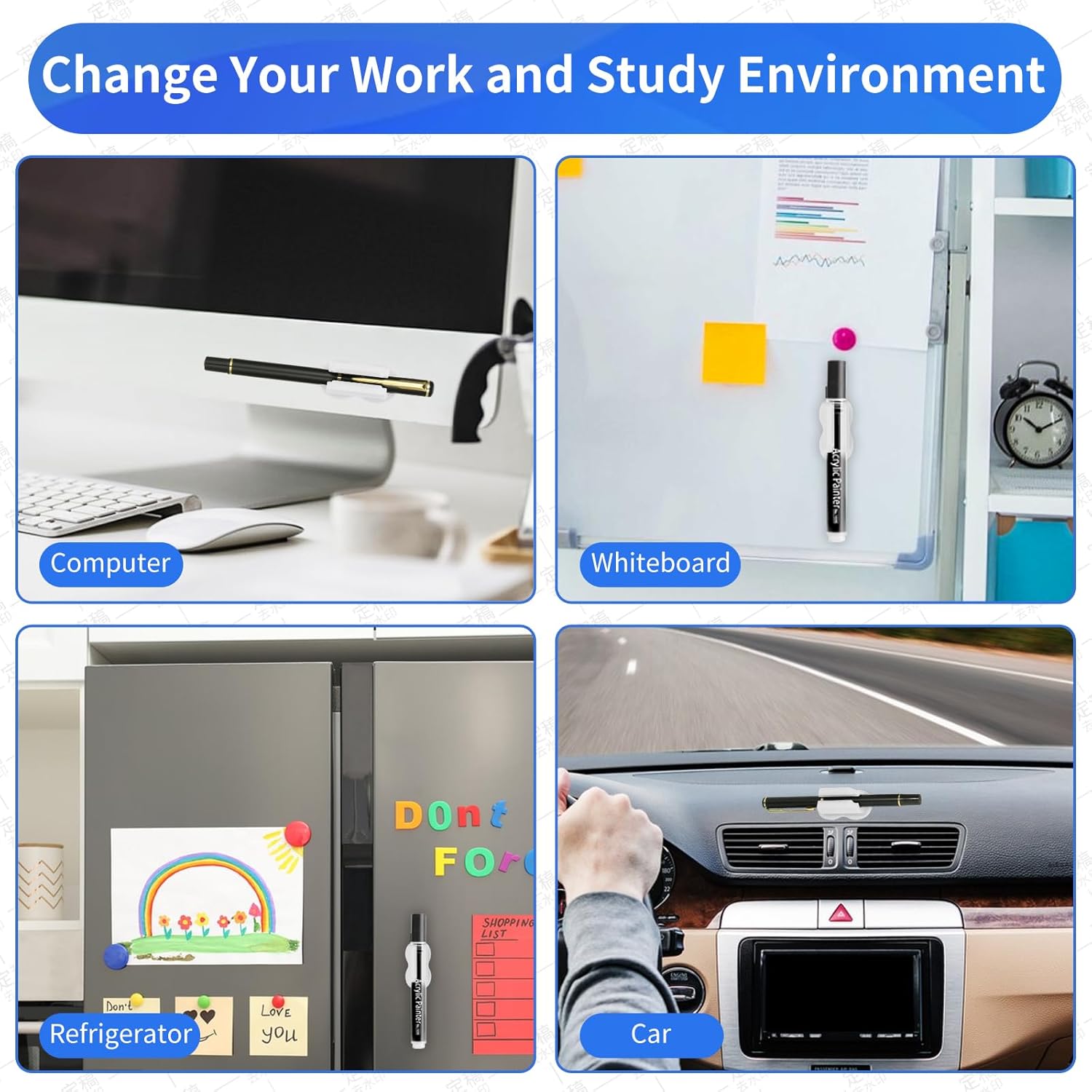 - ăChange Your Work and Study EnvironmentăThese pen pencil holders can not only be easily stuck on the desktop, but also can be fixed on the wall, clipboard, car, monitors, mirrors etc. They can hold thin and thicker pencils, pens, markers, etc. which allows you to save time by no longer wasting it searching for pens on your desk. It is an artifact that comes to your doorstep for whom need to organize a large amount of stationery.