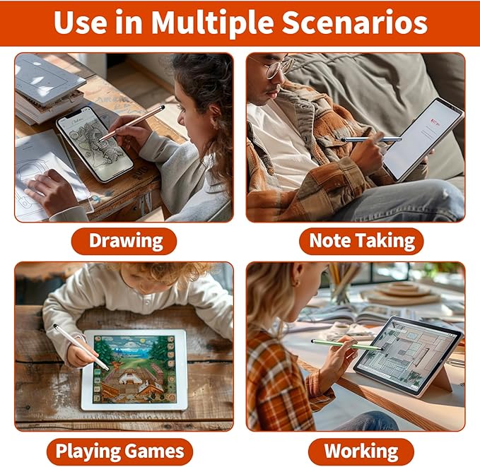 - 【Stylus Pen for Touchscreen】Our stylus pen requires no Bluetooth pairing or charging, you can unleash your creativity anytime and anywhere, just pick up the stylus and express your thoughts freely on the touch screen.