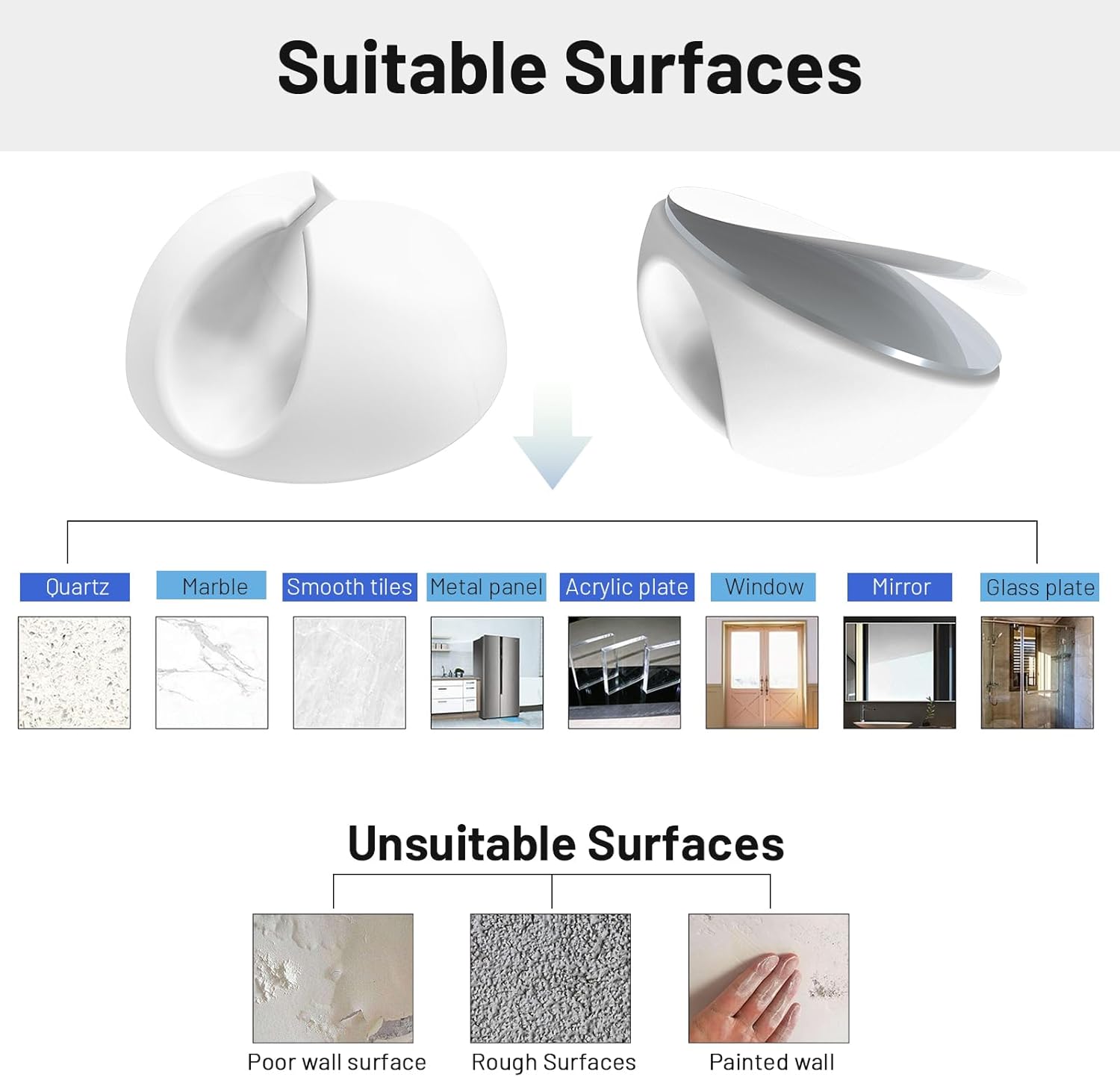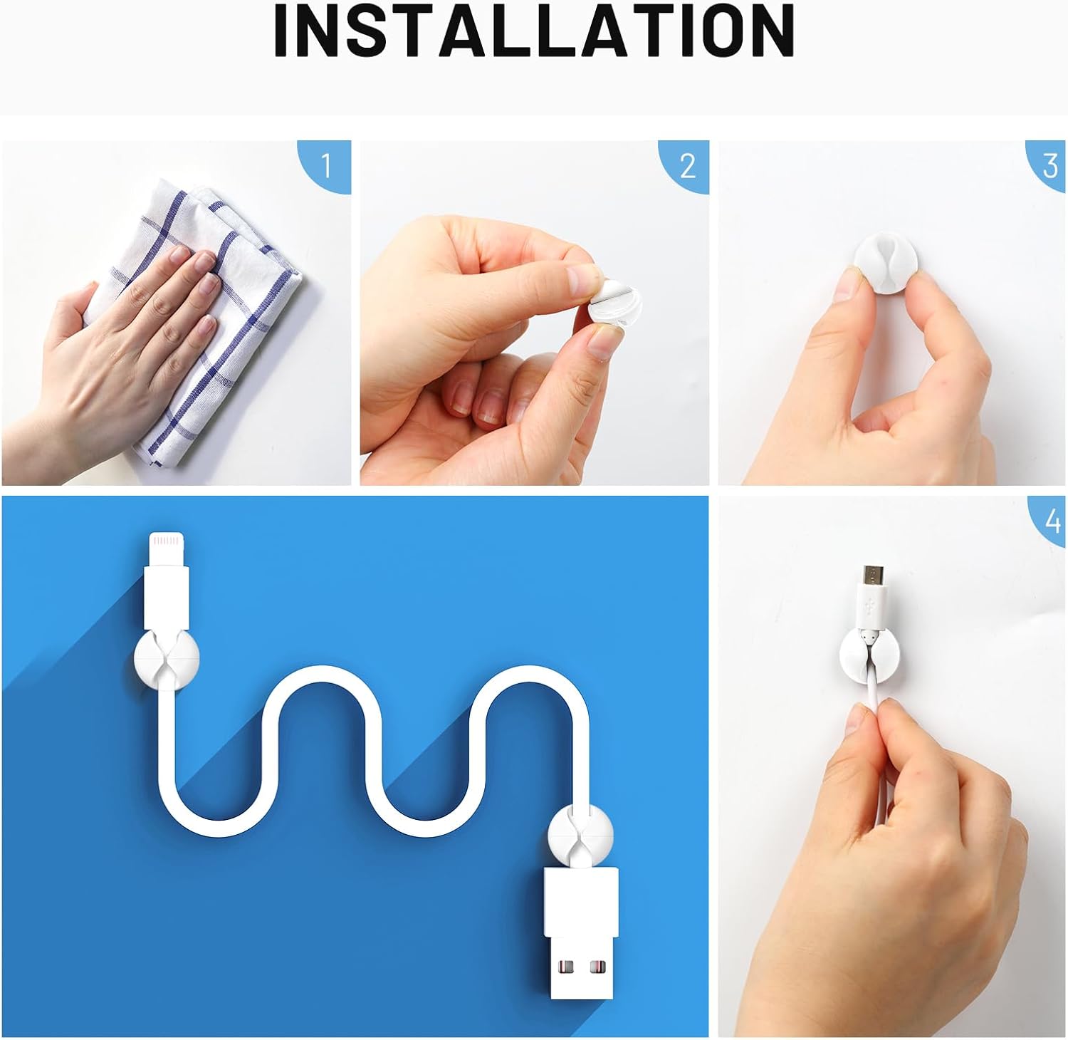 - Easy to install: Remove the protective film, stick the cord organizer, and drain the air from the contact surface. Suitable for a variety of smooth surfaces, like tiles, steel, glass, mirrors, painted wood