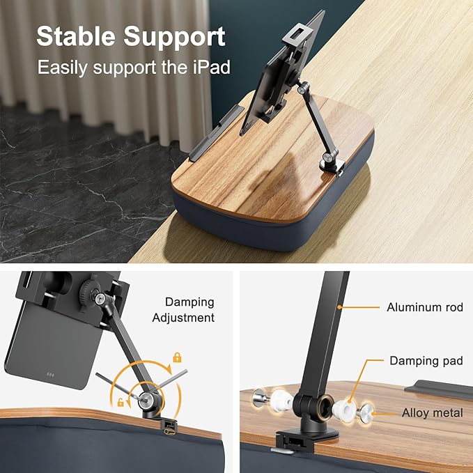 - 【FLEXIBLE ADJUSTMENT】The detachable tablet arm features two 180° adjustable joints, securely fixed with metal screws, ensuring flexible positioning and stability for optimal use.