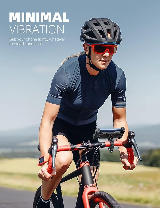- 【 Rubber Protection】 This bike phone mount comes with silicone pads that keep your phone from scratches and vibration. The motorcycle phone mount holds your phone perfectly when cycling. Also with up and down linkage phone clamp, can easy install the phone into the phone clamp. Great Gift for a rider.