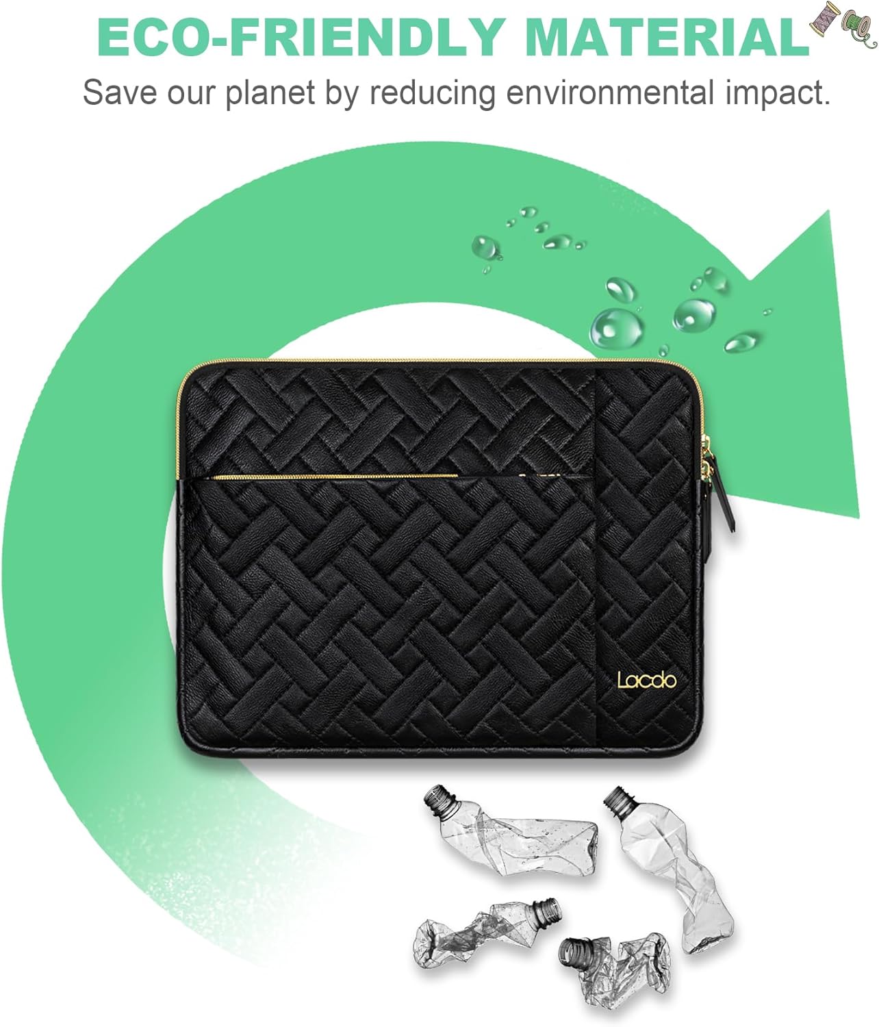 - Sustainable Leather Material: This new pattern laptop sleeve incorporate sustainable materials, saving the planet by reducing impact on environment and promoting sustainable living, helps in maintaining cleaner earth. Durable leather fabric that is also water resistant, ensures that the laptop bag can withstand daily wear and tear while protecting devices from water damage, offer a green, low-carbon, stylish, and protective solution for carrying your laptop and accessories.