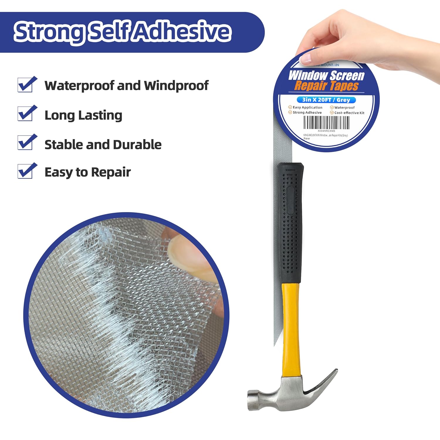 - 【 COST-EFFECTIVE KIT 】The KING MOUNTAIN screen repair tape measures 3 in x 20 FT, providing a wider tape to repair larger tears and holes, and allowing you to get creative with any pattern you desire. Perfect repairs without the need to spend extra money replacing the entire window screen